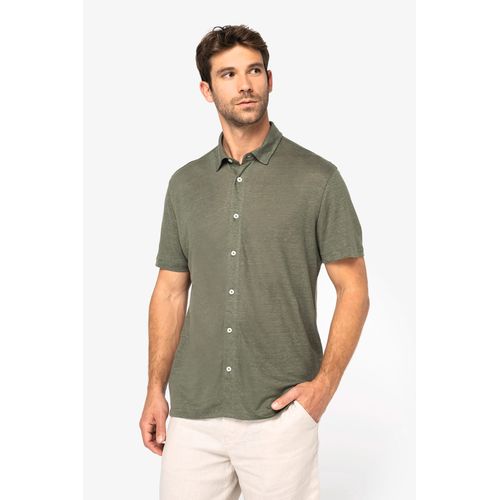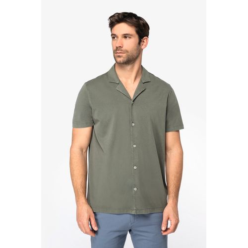 Camisa eco-responsável com aspecto lavado em jersey de manga curta com colarinho à bowling de homem desde €32,98 s/IVA