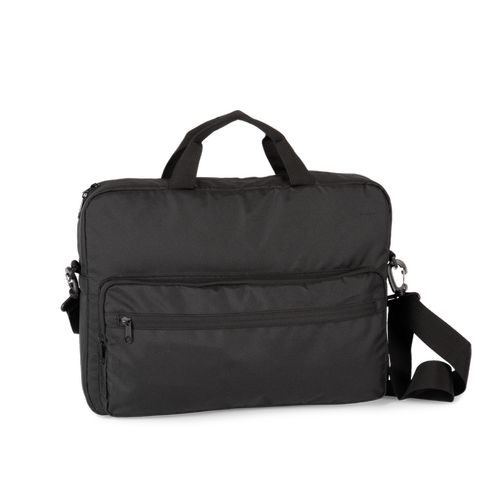 Compartimento principal totalmente acolchoado para guardar e proteger um computador até 15”. Prática, a presilha na parte traseira destina-se a fixar o saco na pega do trolley. Fabricado a partir de poliéster reciclado, para uma moda sustentável. 100% poliéster. Mala profissional concebida a partir de 60% poliéster reciclado. Bolso duplo frontal com fecho para facilitar a personalização. Compartimento principal acolchoado computador (porta-computador) até 15 polegadas. Presilha na parte traseira para fixação num trolley.