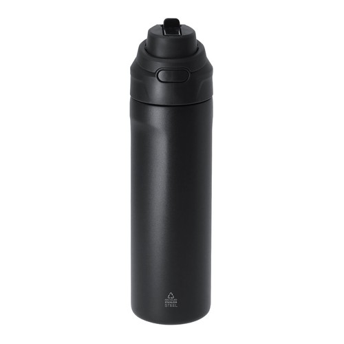 Garrafa térmica com capacidade de 700 ml. Feito de aço inoxidável reciclado. Tem uma parede dupla e dois sistemas de bebida: um orifício com fecho hermético com abertura de empurrar e uma palhinha integrada, adaptando-se às preferências de uso. Com tampa do sistema de vedação hermética. Inclui uma alça de transporte integrada e prática, ideal para transporte fácil em qualquer situação. Livre de BPA. Com emblema de Aço Inoxidável Reciclado. 700 ml Composition : Aço Inox Reciclado.