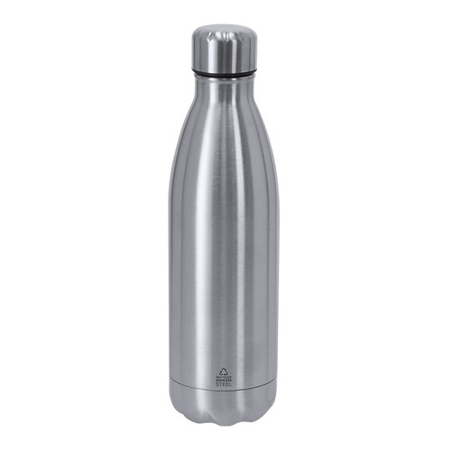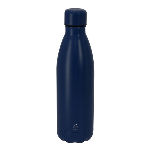 Garrafa térmica com capacidade de 500 ml, feita de aço inoxidável reciclado de dupla parede. O seu design combina corpo com tampa de rosca em cor correspondente com acabamento mate. Livre de BPA. Inclui emblema em aço inoxidável reciclado. 500 ml Composition : Aço Inox Reciclado.
