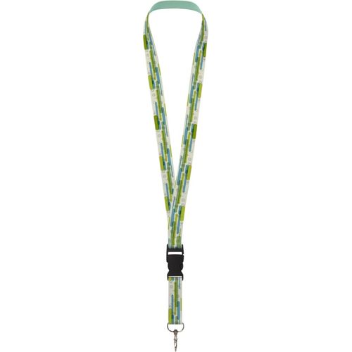 Lanyard de sublimação com design a cores em PET reciclado, com fita em PET reciclado, gancho metálico e fivela em PET reciclado. A impressão está disponível numa ou em ambas as faces. Para impressão frente e verso, pode escolher entre a opção normal ou ajustada (ajustada significa que a impressão fica alinhada em ambos os lados). Pode conter um crachá, um bilhete de identidade ou chaves. Disponível em 4 larguras laterais diferentes: 10, 15, 20 e 25 mm. Com a sublimação ajustada, o seu desenho é reproduzido perfeitamente alinhado em ambos os lados da fita. Materials : Poliéster PET reciclado Default print option : Sublimação – all over, front – max color : full colour – 10 x 900 mm Para este produto, o fornecedor concluiu todos ou parte dos dados GPSR. Para mais informações, contacte o fornecedor.