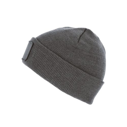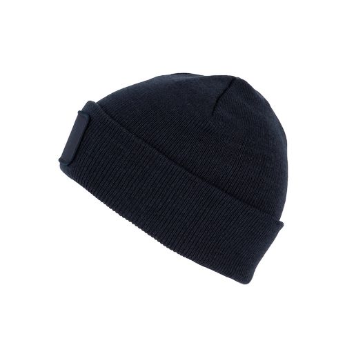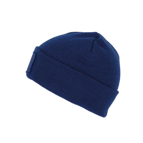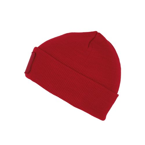 Patch em algodão, ideal para a personalização. Dobra tricotada para melhor apresentação e um estilo descontraído. Gorro sustentável: produzido a partir de fibras recicladas. 50% poliéster reciclado, 50% acrílico. Gorro tricotado. Patch em algodão na parte frontal para facilitar a personalização. Etiqueta da marca Tear-away.