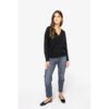 50% algodão biológico. 50% liocel TENCEL™. Algodão penteado. Arqueado 12. Corte regular. Ombros descaídos. Detalhe fashion na gola. Botões em plástico reciclado em contraste. Malha rib 1 x 1 dupla e plana nos punhos e no cós. Peso médio do tamanho M: 275 g. Certificações : OCS Blended / Algodão Biológico EVE Vegan