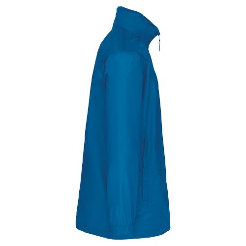 Material flexível e muito leve. Prático e dobrável graças ao sistema K-WAY®. Proteção contra o vento e a chuva. 100% poliéster. Capuz no interior da gola. Fecho frontal. 2 bolsos frontais com fecho. Cordão de ajuste. Punhos elásticos. Transforma-se em bolsa (encaixa no bolso) – sistema K-Way®.