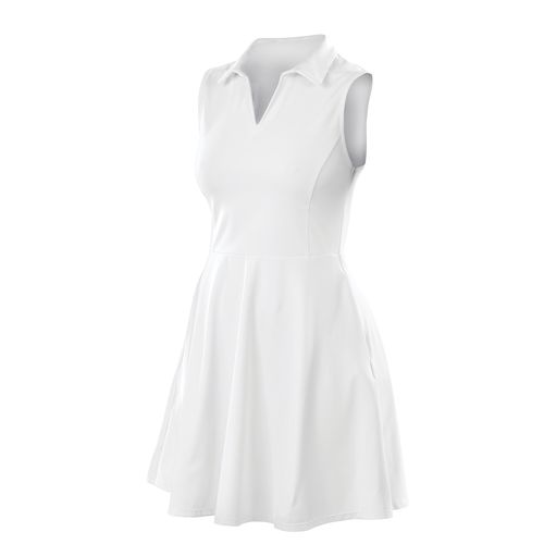 Respirável. Corte muito extensível para maior conforto e movimento. Tecido de secagem rápida. 78% poliéster reciclado, 22% elastano. Vestido de desporto sem mangas com colarinho clássico, ideal para o ténis e todos os desportos de campo. O tecido reciclado muito extensível oferece durabilidade, grande elasticidade e uma excelente abertura. Saia completa com bolsos laterais e corte justo. Certificações : Polyester recyclé